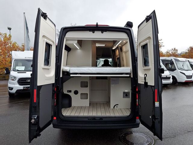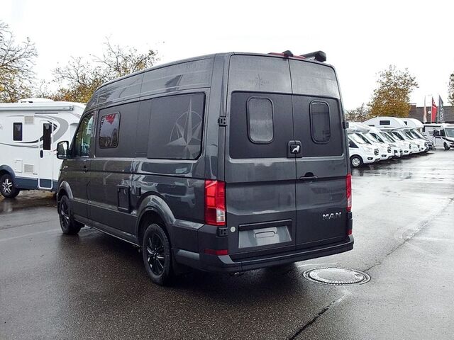 - Ausstattung Sven Hedin Premium (Westfalia Komfortpaket, Vorbereitung für Anhängevorrichtung, Schmutzfänger vorn und hinten, Distanzregelung ACC bis 160 km/h für Automatikgetriebe, Müdigkeitserkennung, Spurhalteassistent "Lane Assist", LED-Hauptscheinwerfer u. LED-Tagfahrlicht, Licht- und Sichtpaket, ParkPilot, im Front- und Heckbereich, Beheizbare Scheibenwaschdüsen vorn und Wasserstandsanzeige, Reifendruckkontrollanzeige (direkt messend), Lederlenkrad beheizbar, Leichtmetallräder in schwarz 17", Großes Dachfenster im Wohnbereich, Winterpaket, Vorrüstung SAT und Solar, Schwenktisch 400 mm, Markise anthrazit, 1 zusätzliche AGM Batterie, Trittstufenbeleuchtung, Verbundglas-Frontscheibe in Wärmeschutverglasung, beheizbar, Schiebetür, rechts, im Lade-/ Fahrgastraum, mit Zwischenarretierung zur Öffnungsbegrenzung, Coming Home / leaving Home Funktion, Sicherheits-Paket-Aktiv, MAN Media VAN Business Paket inkl. Navigation, Rückfahrkamera mit dynamischer Linienführung)