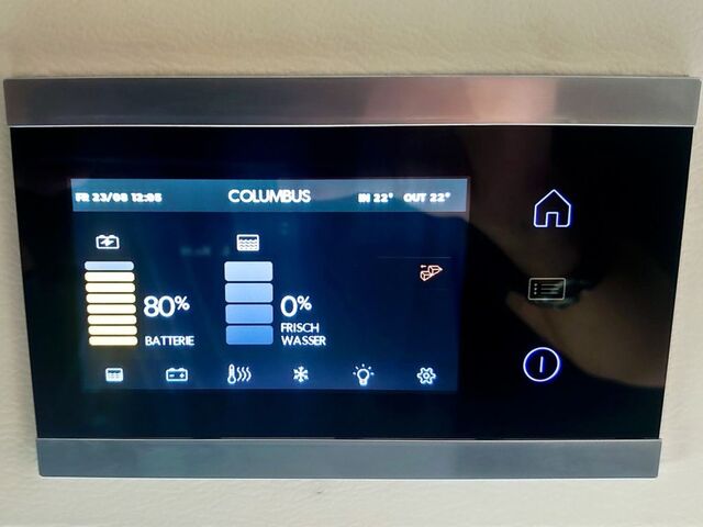- Columbus Premium Paket (Außendusche warm/kalt inkl. Duschkopf und Saugfuß, Duscheinleger im Yachtdesign für Nasszelle Sitzheizung für Fahrer- und Beifahrersitz, Winterpaket: Abwassertank beheizt, Isolierung von Heck-und Schiebetür, Isoliermatte für Hecktür, Isoliermatte für Frontscheibe, zusätzlicher Konvektor im Bereich Fahrerhaus, Fußbodenheizung inkl. beheizter Duschtasse, Heizbetrieb elektrisch 230 V), Teppich Fahrerhaus