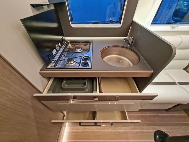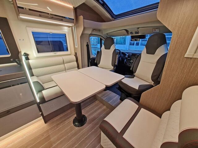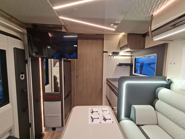 - Ausstattung POWER EDITION (Automatikgetriebe, 2 x 200W Solar mit MPPT Laderegler, 2x 100 AH Lithium Batterie, Sonderbeklebung, Notbremsassistent mit Fußgängererkennung, Licht- und Regensensoren, Spurhalteassistent, Verkehrszeichenerkennung, Müdigkeitswarner, Intelligenter Geschwindigkeitsassistent, Adaptiver Tempomat, 16 Zoll Leichtmetallfelgen, Polsterung POWER EDITION, Fahrerhaus in Metallic Black, Außengasanschluss, Außendusche, Kompressorkühlschrank 158L, Markise 4,5m , Radio 9" Pioneer inkl. Apple CarPlay + Android Auto, manuelle Klimaanlage Fahrerhaus, Lenkrad und Schaltknauf aus Leder, Isofix, XL Aufbautür mit zwei Schließpunkten + Fenster und Zentralverriegelung, Truma Heizung Combi 6 Gas, Truma iNet X Pro Panel, intelligentes Doppelbatteriemanagementsystem, Rahmenfenster Seitz, OPEN Sky Panorama-Dachfenster, Spülenabdeckung / Schneidebrett, Druckwasserpumpe, Abwassertank isoliert und beheizt, Trittstufe isoliert, Haltevorrichtung für Kapselkaffeemaschine, 10 Jahre Dichtheitsgarantie)