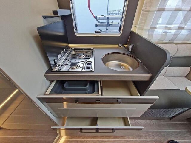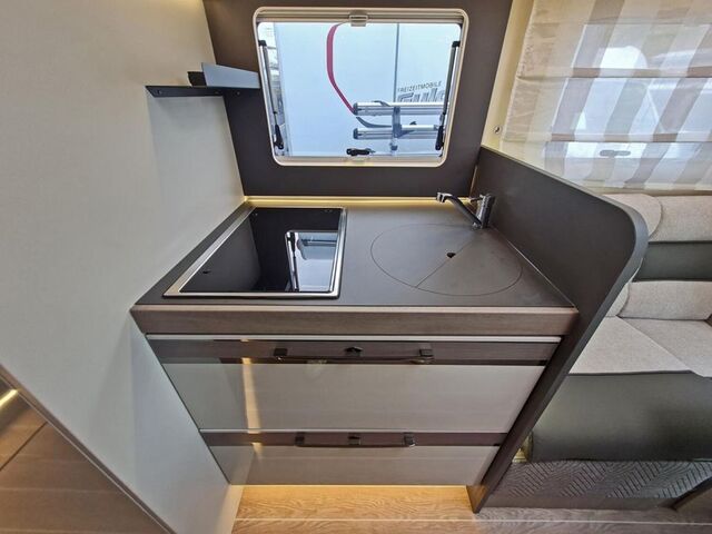 - ZEFIRO SERIENAUSSTATTUNG FORD 2026 (Infotainmentsystem Sync 4 mit 12" Touchscreen inkl. Apple CarPlay + Android Auto | Semi-digitales Cockpit mit 8" Bildschirm | automatische Klimaanlage | Tempomat | Notbremsassistent | Spurhalteassistent | Verkehrszeichenerkennung | Nebelscheinwerfer mit Abbiegelicht | Lichtautomatik | Scheibenwischerautomatik |elektrische Handbremse | Rückfahrkamera |LED-Rückleuchten |Truma Kombi 6 Gas | isolierter und beheizter Abwassertank | isolierte Trittstufe | intelligentes Doppel-Batterie Managementsystem | Thermische Verdunkelung Fahrerhaus | Dachluke in der Toilette 280 x 280 mm | Fliegengittertür | Polster und Sitzbezüge: Borea | Sitzbezüge Fahrerhaus passend zur Wohnwelt | ISOFIX | USB-Steckdosen an Sitzgruppe und Schlafbereich | 220 V-Steckdose in der Garage | Truma INETX| Seitz-Rahmenfenster | Spülabdeckung | Seitenwände in Lichtgrau | XL-Aufbautür | Kompressor Kühlschrank 158 L | Fenster in T-Haube | 10 Jahre Dichtheitsgarantie)