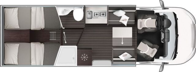 - ZEFIRO SERIENAUSSTATTUNG FORD 2026 (Infotainmentsystem Sync 4 mit 12" Touchscreen inkl. Apple CarPlay + Android Auto | Semi-digitales Cockpit mit 8" Bildschirm | automatische Klimaanlage | Tempomat | Notbremsassistent | Spurhalteassistent | Verkehrszeichenerkennung | Nebelscheinwerfer mit Abbiegelicht | Lichtautomatik | Scheibenwischerautomatik |elektrische Handbremse | Rückfahrkamera |LED-Rückleuchten |Truma Kombi 6 Gas | isolierter und beheizter Abwassertank | isolierte Trittstufe | intelligentes Doppel-Batterie Managementsystem | Thermische Verdunkelung Fahrerhaus | Dachluke in der Toilette 280 x 280 mm | Fliegengittertür | Polster und Sitzbezüge: Borea | Sitzbezüge Fahrerhaus passend zur Wohnwelt | ISOFIX | USB-Steckdosen an Sitzgruppe und Schlafbereich | 220 V-Steckdose in der Garage | Truma INETX| Seitz-Rahmenfenster | Spülabdeckung | Seitenwände in Lichtgrau | XL-Aufbautür | Kompressor Kühlschrank 158 L | Fenster in T-Haube | 10 Jahre Dichtheitsgarantie)